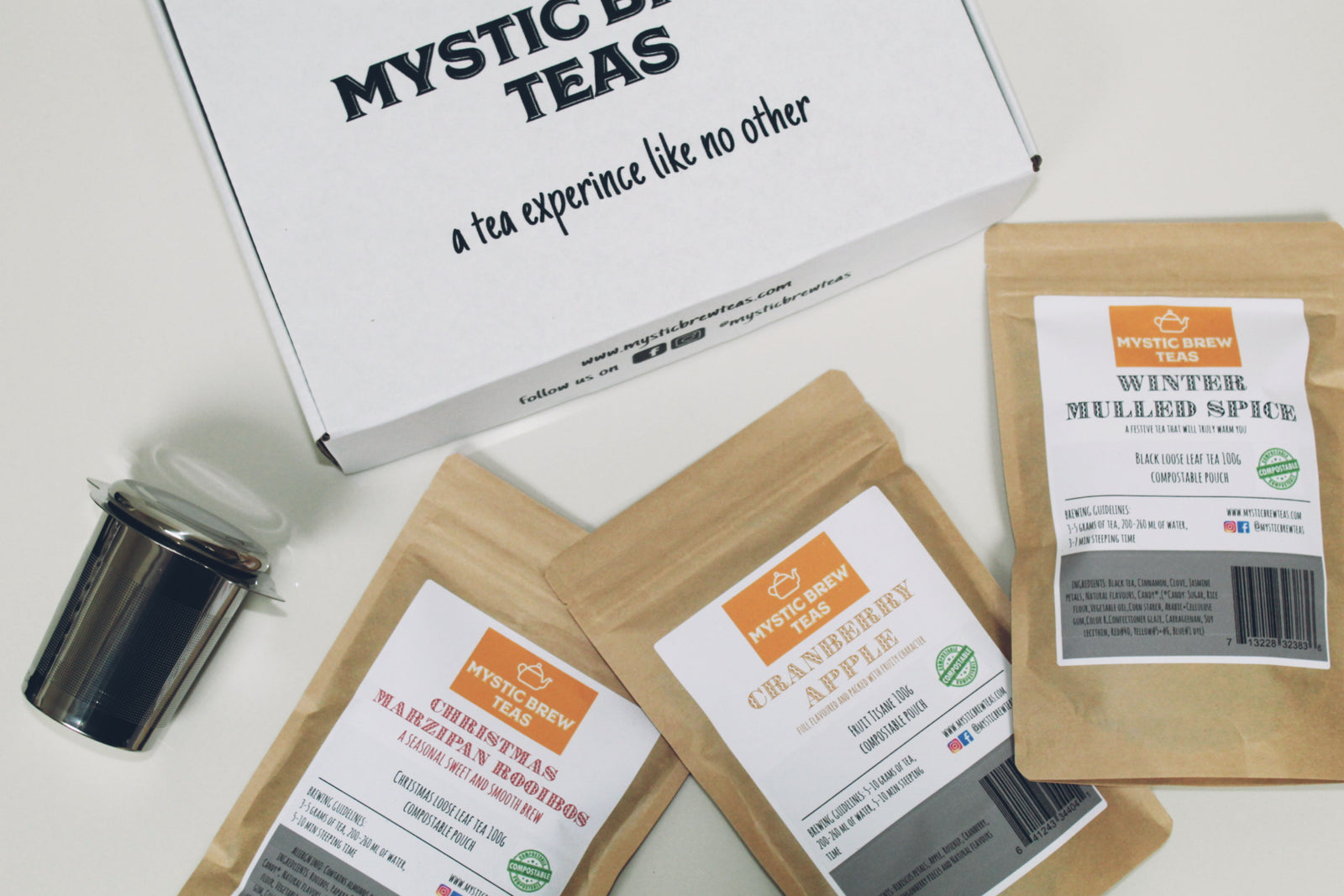 We care about our impact on the environment. Our tea comes in variety of eco-friendly packaging including recyclable caddies and compostable pouches and eco mailing boxes.